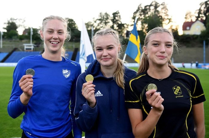 Många av IFK Halmstads aktiva var förra helgen i farten när SM avgjordes på olika platser. Det inleddes på fredagen med tävlingarna i Sollentuna där Ida Jexe Ek i F19 stav slog till med ett nytt prydligt personligt rekord på 3,68 vilket också räckte till en andraplats och silvermedalj. Det var också nytt klubbrekord för F19 (det tidigare från 1998 på 2.30 från 1998) samt hennes egna tidigare i kvinnor på 3.46. Nytt prydligt personligt rekord slog också Edvin Håkansson i P17 höjd med 1.79 vilket räckte till en femteplats. Isac Svensson kvalade i längd P19 men 6.31 räckte dessvärre inte till en finalplats. Lördag Under lördagen var det Lucas Andersson som också slog personligt rekord i spjut P15 i Uppsala med fina noteringen 40.07. Lucas var också med i diskus och noterade där 33.71. I Sollentuna var Ludvig Palmkvist och Edvin Håkansson med i P17 300 meter häck och löpte jämnt där, med resultaten 43,28 respektive 43,35, dock utan att det räckte till en finalplats för någon av dom. I F19 höjd hoppade Hanna Dahlin 1,40, med Tindra Redenfors och Matilda Åkerman (PB) delade på åttondeplatsen med resultatet 1,54. Matilda var även med i längdhopp där 5,13 räckte till en sjundeplats, Ida Jexe Ek hoppade 5,55 och tog fjärdeplatsen med det resultatet. I slägga noterade Elin Rydqvist också nytt personligt rekord när hon i sista omgången noterade 45,43, vilket räckte till en åttondeplats. I F17 100 meter häck kvalade Anna-Karin Bergenhem in till finalen på 15,10. Dock gick det inte lika fort i finalen men 16,03 gav en sjundeplats. Söndag Förutsättningarna under söndagen var inte de allra bästa och Vilma Jexe Ek noterade 2,29 i F15 stav och 22,49 i F15 spjut. I F19 spjut noterade Matilda Åkerman 35,17 vilket räckte till en sjätteplats och Ida Jexe Ek slog nytt personligt rekord i tresteg med 11,24 och kom femma. Samuel Carlsson hoppade 1,70 i M22 höjdhopp och Anna-Karin Bergenhem stötte 9,40 i F17 kula. Veteran-SM Linda Åkerman var samtidigt i Kalmar och fixade guld i K50 spjut med 32,21 och fick även med sig en bronsmedalj hem i längdhopp med 4,00. Bra kämpat av samtliga – under emellanåt svåra omständigheter. En hel del personliga rekord dessutom och det var ett glatt – om än ganska trött gäng ungdomar – som kom hem till Halmstad under söndagkvällen! JSM-USM 17-22 USM 15-16 VSM Starkt jobbat!