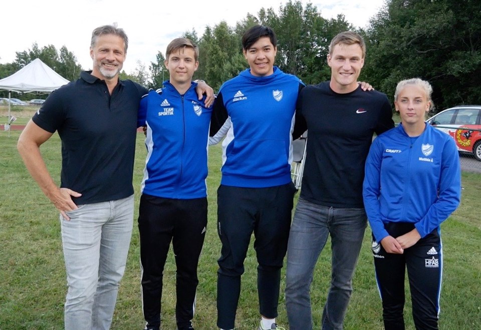 Den för spjutkastare enskilt viktigaste/roligaste tävlingen har varit Lemmingiaden i Karlstad. Det var i år 40 års jubileum och lite av en förtävling av IF Götas Folksam Grand Prix som går av stapeln i morgon. Undertecknad och Linda Å hade tagit med oss Matilda Åkerman, Patrik Bergstrand och Andre Bergenhem, Matilda tävlar i F15 och Patrik och Andre i P17. Matilda gick ut starkt och satte nytt PB med 37.08m i första kastet vilket räckte till seger, Patrik hade samma mål och lyckades också med ett nytt PB i sitt första som blev 43.56m och det räckte till en andra plats, Andre visade liknande form på inkastningen men hade inte riktigt samma flyt i tävlingen men nådde nästan pers med 38.48m och knep bronspengen. Linda kastade i gruppen senare och det visade sig att den klassen (kvinnor) hade fått GP status, och det blev ett prydligt årsbästa med 35.85m och en 6e plats för henne. Men dagen började väldigt inspirerande med en föreläsning av Olympiska Mästaren Thomas Röhler som under en och en halv timme pratade och svarade på frågor om livet som idrottare/spjutkastare. Vi hade även turen under gårdagen att komma till Cheng Chao-Tsun (spjut/JT; PB 91,36/17) och hans landslags TEAM TPE från Taiwans träning och fick bevitna lite 85m kast. Bild: Patrik Boden IF Göta (satte Världsrekord med 89.10m år 1990) Patrik Bergstrand, Andre Bergenhem, Thomas Röhler och Matilda Åkerman